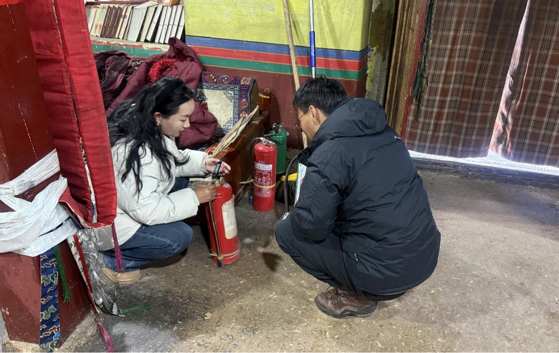 近日,桑日县文旅局深入丹萨梯寺、曲龙寺、曲桑寺、卡玛当寺庙等辖区寺庙,开展消防安全及酥油灯使用专项检查,重点排查消防设施、电气线路、易燃易爆物品管理等情况,严查明火使用区域防火措施落实。同时发放宣传手册,讲解消防知识并演示器材使用,提升管理人员及信众安全意识与应急能力。