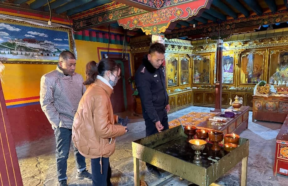 随着“两节”临近,安全风险随之上升。县文物局分别深入玛悟觉寺、卓德寺、乃西寺、扎西曲林寺、觉康拉康等,围绕文物安全、消防隐患、寺庙书屋等进行排查,检查坚持“零容忍、严执法、重实效”的原则,排查并消除各类风险隐患,检查组采取 “执法检查+现场指导+宣传教育” 相结合的模式,力求“进一次门、查多项事、一次到位”,既提升检查质效,也减轻基层迎检负担。切实保障文物本体安全,保障人民群众生命财产安全,为全县文物安全保驾护航。