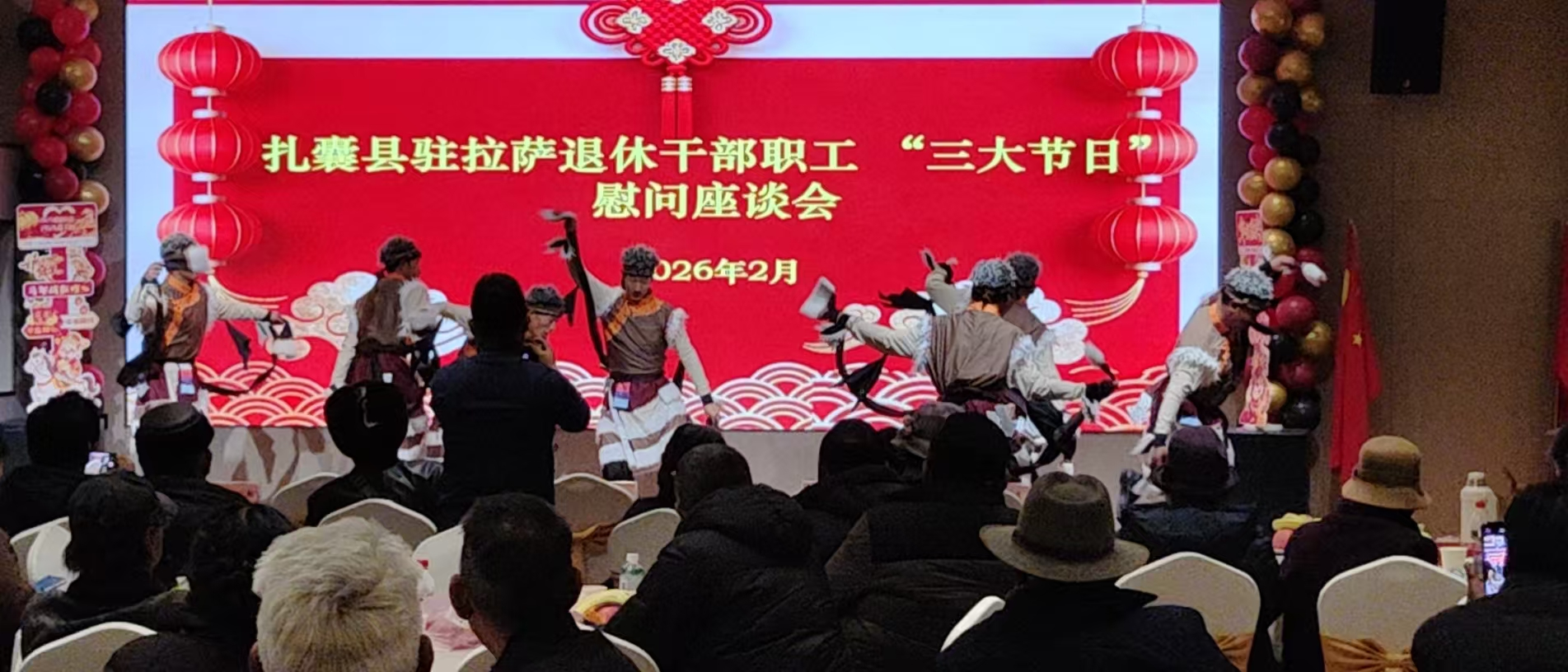 为向驻拉萨退休干部职工送上节日关怀与美好祝福,扎囊县艺术团演职人员受邀参加驻拉萨退休干部职工“三大节日”慰问座谈会,并为现场的退休干部职工送去精彩的文艺演出。