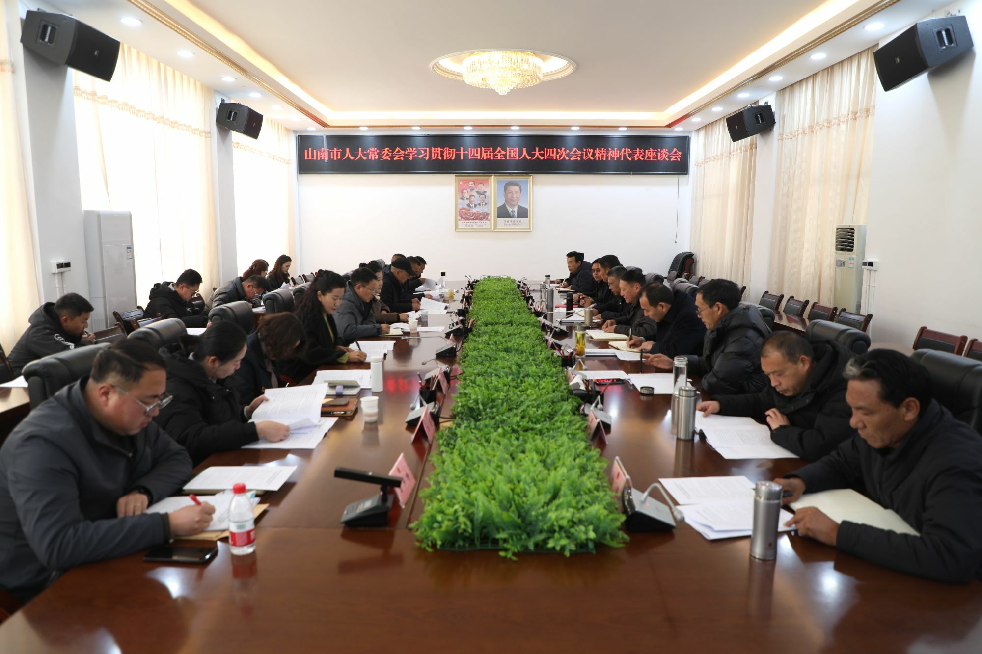 3月27日下午,市人大系统学习贯彻十四届全国人大四次会议精神专题会议召开,传达学习十四届全国人大四次会议精神,并邀请市委统战部相关同志作《民族团结进步促进法》专题辅导,部分驻山南的全国和自治区、市三级人大代表作交流发言。