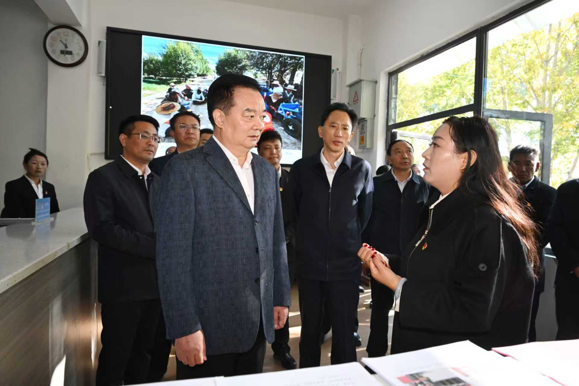 10月11日,自治区党委书记王君正前往拉萨市曲水县,宣讲习近平总书记视察西藏时的重要讲话精神并调研基层党建工作。这是王君正在曲水县达嘎镇达嘎村详细了解党员队伍结构、基层党组织建设情况。记者 李洲 摄