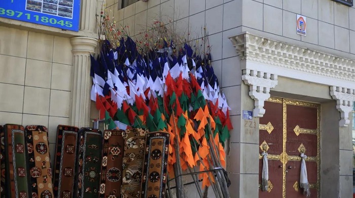 藏家人的“图恰”不是把脏的、旧的弄干净了就可以了,还要换上崭新的窗帘和门帘。藏家人的意识里,门是一个家庭的“脸”。在街边就许多不同款式、不同厚度、不同颜色的窗帘、门帘,大家认真挑选,带回家,给房子“上新”。