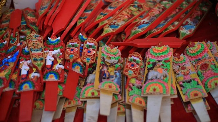 这是新年不可或缺的物品,很多装饰都会用到它。颜色鲜艳,造型多样,有人物、树木、飞禽、走兽,甚至还能塑造出一个故事。