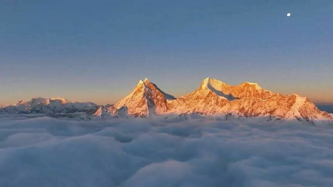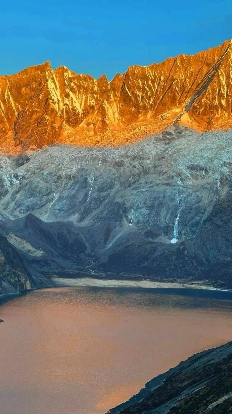 当阳光照耀山川,那是独属于雪山的浪漫✨ 亲眼目睹雪山被阳光洗礼的那一刻,才懂为何人人痴迷日照金山。我想,如若幸运有颜色,那一定是这抹耀眼的金色!被金光笼罩的瞬间,鸡皮疙瘩掉满地,好运直接焊在身上