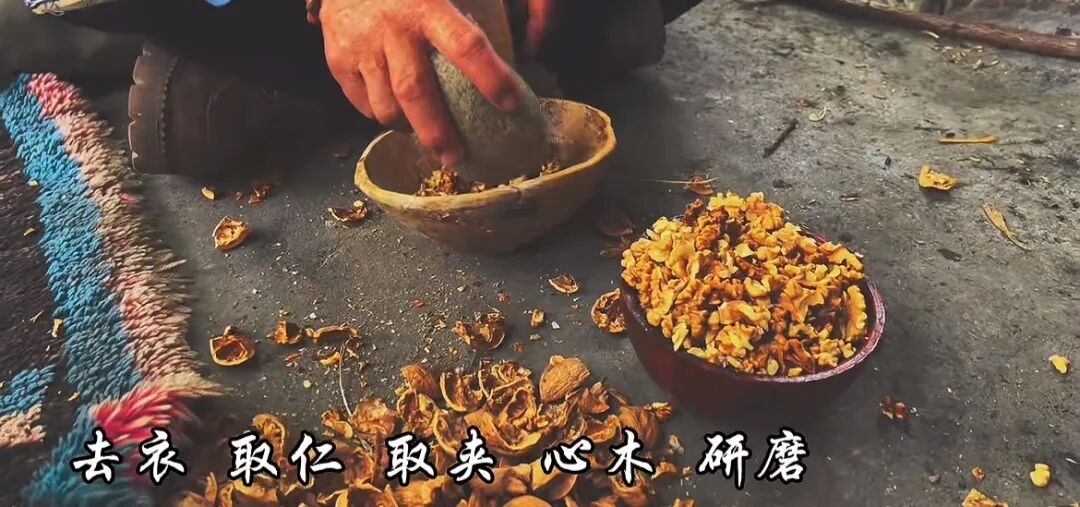 核桃得用当年的新果,保证口感酥脆;盐则要用本地的岩盐,提鲜不发苦。