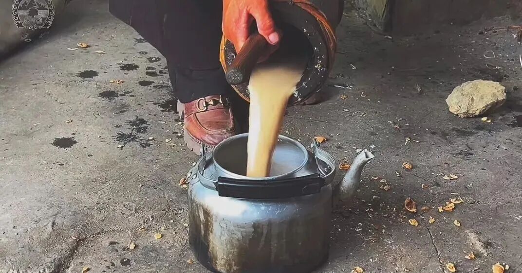 牧民们把喝不完的鲜牛奶发酵成酸奶,再加入核桃增加口感,