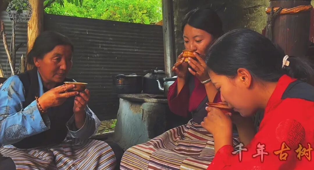 到煮茶汤、反复打茶,每一步都是加查女人的“必修课”,千年核桃树下,女人们围坐打茶、
