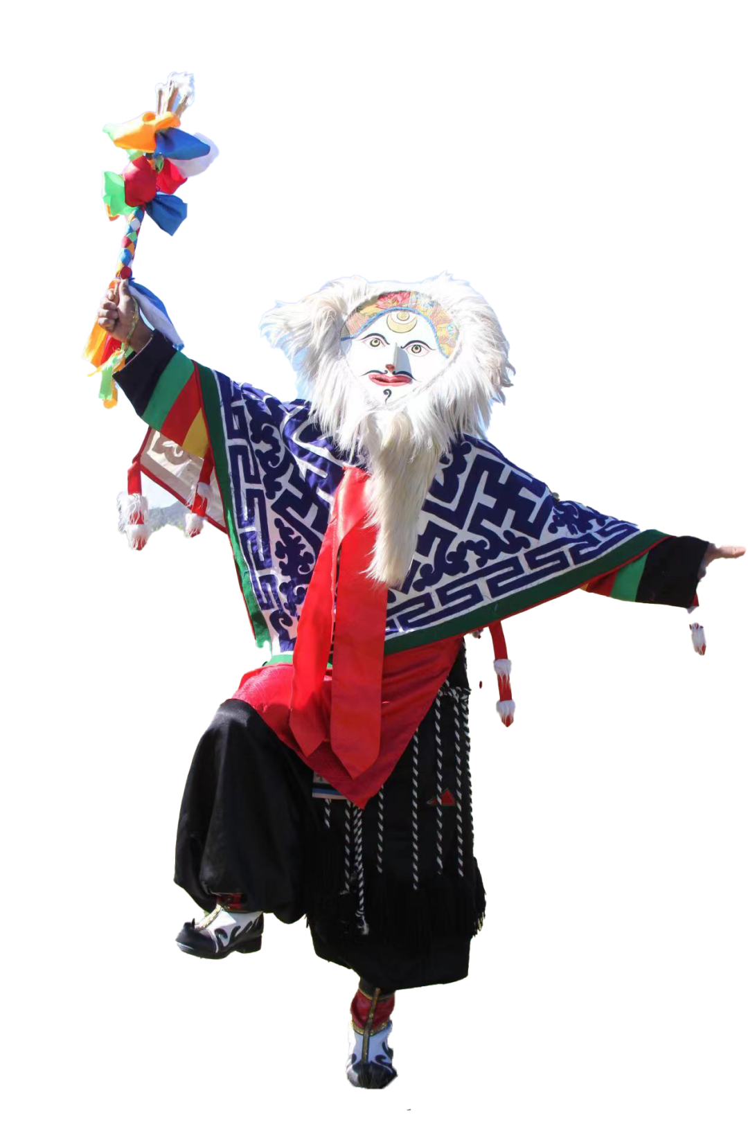 站在传习所前,似乎能感受到岁月在这里沉淀下的厚重文化底蕴。白面具是其显著标志,面具上眼睛往天上看的设计,仿佛透着股灵动又神秘的气息。这种白色面具用白色山羊皮制成,周围以白色羊毛装点,人物的头发和胡子造型中,胡子尤为修长,为整体添了几分韵味。