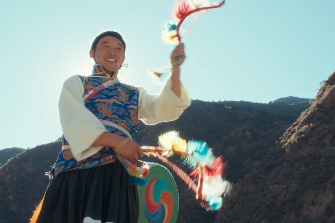 服饰彩蛋:舞者藏袍上的祥云纹,每一朵都由村里老人手工刺绣,耗时半个月才能完成一件