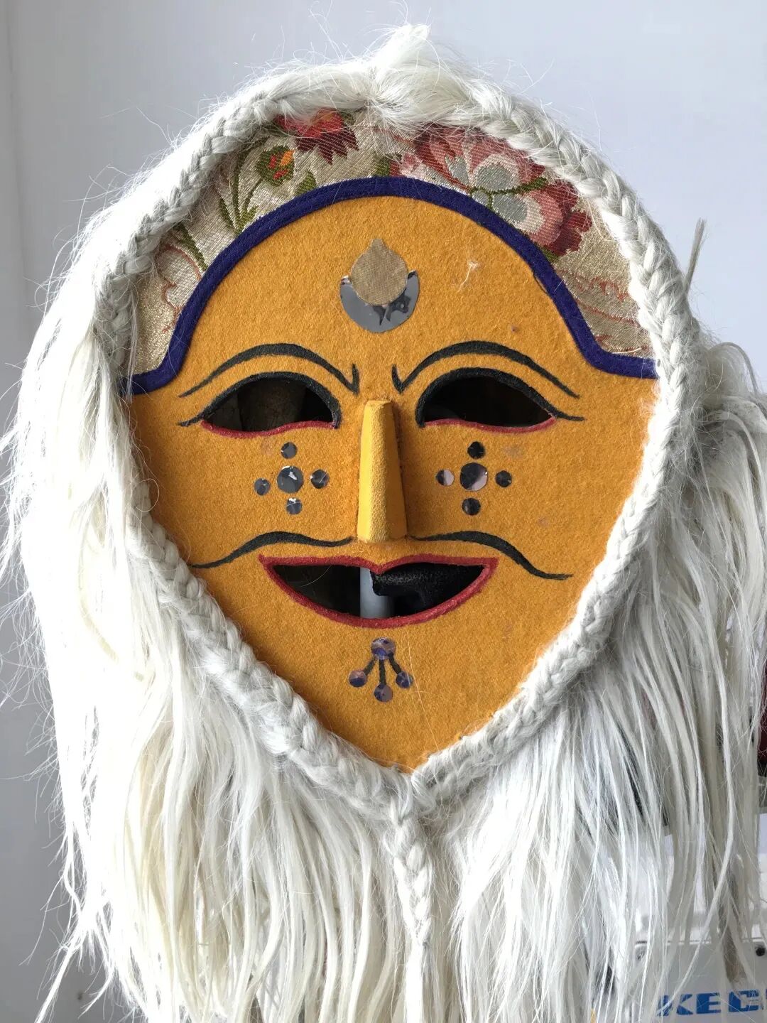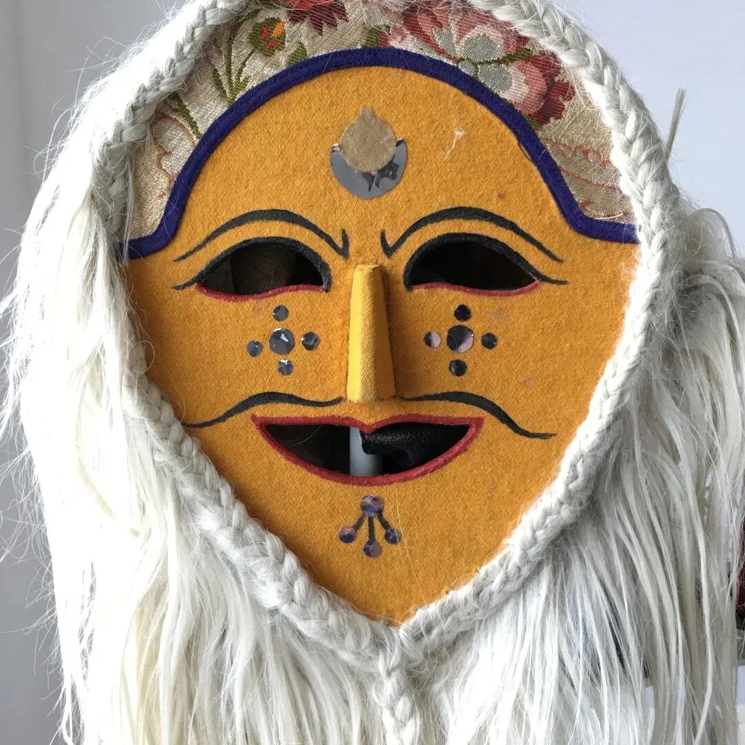 那张仿照藏戏创始人唐东杰布形象制作的黄面具